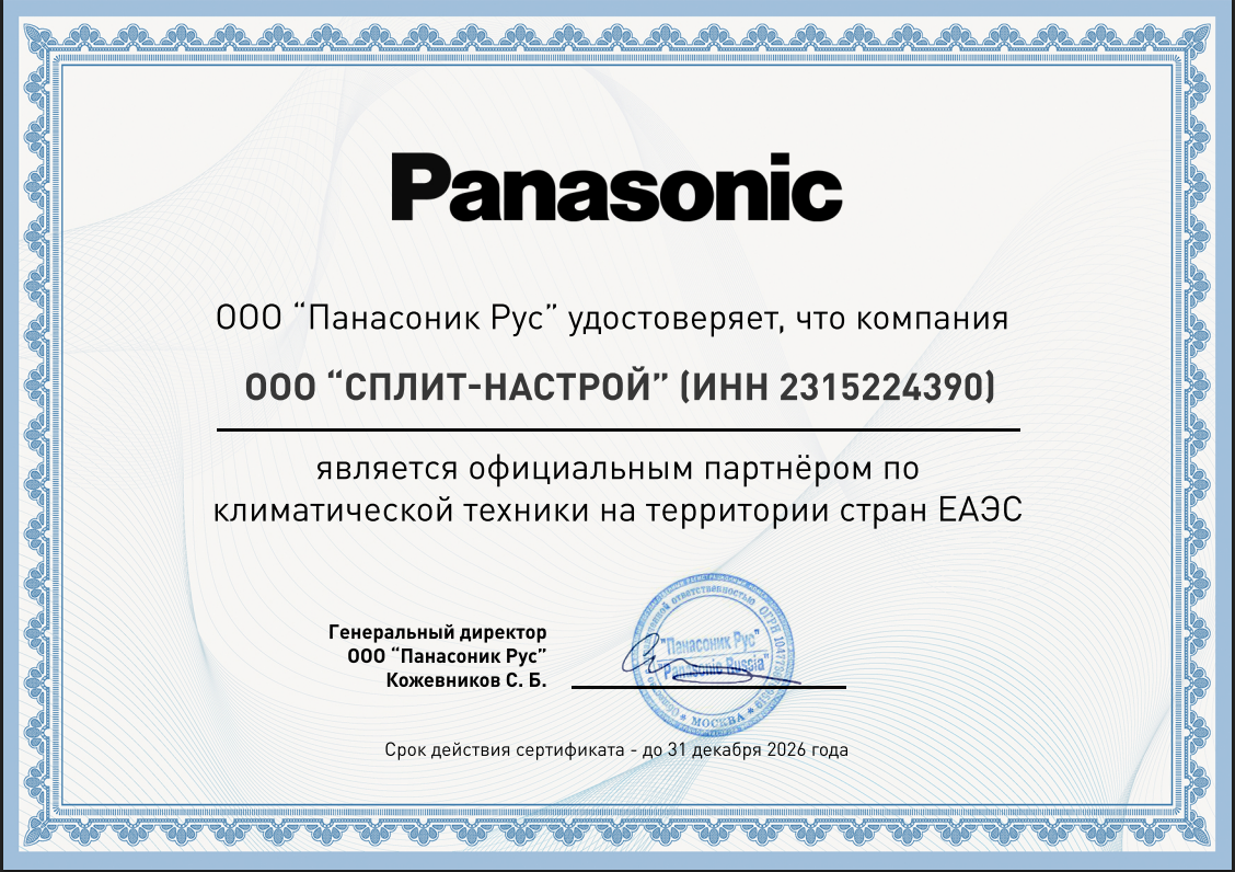 3 года гарантия от производителя Panasonic. 3 года сервисная гарантия от климатической компании Сплит-Настрой.